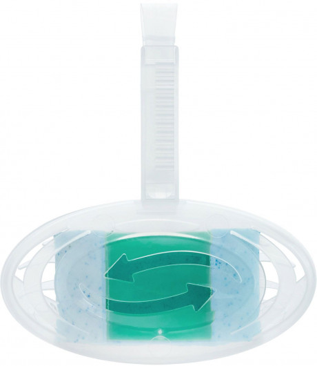 Разместите освежитель на ободке унитаза в зоне максимального потока воды, отрегулировав длину подвеса. Обратите внимание, что специальная гелевая полоса внутри блока может не растворяться полностью — после завершения срока службы блока ее остатки следует удалить перед установкой нового средства. После контакта с блоком необходимо тщательно вымыть руки. Полный перечень мер предосторожности указан на оригинальной упаковке.