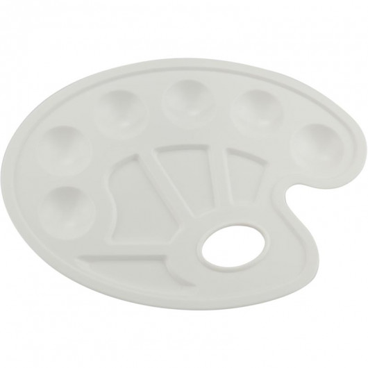 - Белая палитра Kite овальной формы имеет удобные маленькие круглые углубления для разведения красок.