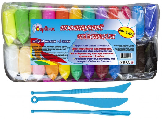 Пластилин лёгкий (воздушный) 24цв.*7г. + 3 стека Барвинок