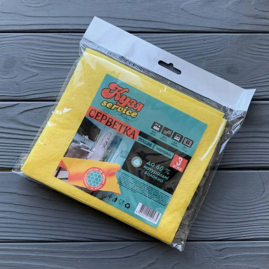 Салфетка вискозная, 30*35см., 3шт/уп., ассорт. Кузя сервис