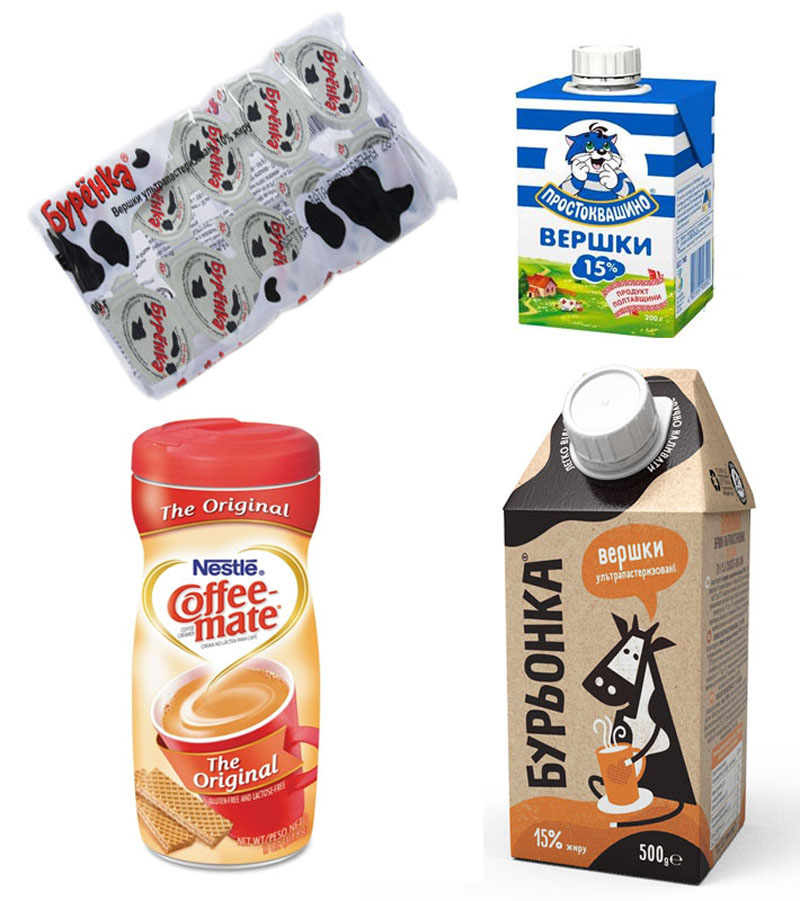 Виробники випускають кисломолочні товари, приготовані за різними рецептами та технологіям. Продукція відрізняється вихідною сировиною (сухе відновлене або свіже молоко), жирністю, видом і обсягом упаковки, що впливає на вартість молочних продуктів. Зазвичай як пакувальний матеріал використовуються картонні коробки, пластикові пляшки та пакети типу «Дой-пак». Стандартний обсяг упаковки вершків - 200-300 мл, молока - 0,5-1 л. Місткість упаковки кисломолочних продуктів зазвичай становить 300-750 мл. Жирність варіюється в межах 0-33%. Найвища жирність у вершків.