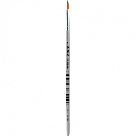 Пензель №1 Kite K18-340-SN-1 допоможе дитині з легкістю втілити свою творчу задумку на папері. Пензель призначений для малювання водорозчинною фарбою - аквареллю, гуашшю або темперою. Виріб має безшовну ручку, виготовлену з березової деревини, та обрамлену алюмінієвою обоймою. Щетина синтетична, тримає первісну форму і добре вбирає фарбу.