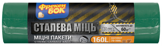 Мішки для сміття двошаровий на 160л. 110*105см*10шт., HD/LD, зелено-чорн. Фрекен Бок