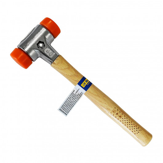 Головна особливість цього молотка – його накладки з високоміцного поліуретану. На відміну від звичайної гуми, поліуретан довговічніший, стійкіший до стирання та деформацій, а також не втрачає своїх властивостей у широкому діапазоні температур (від -60°С до +80°С), тому молоток прослужить вам довгі роки, зберігаючи свою форму та ефективність.